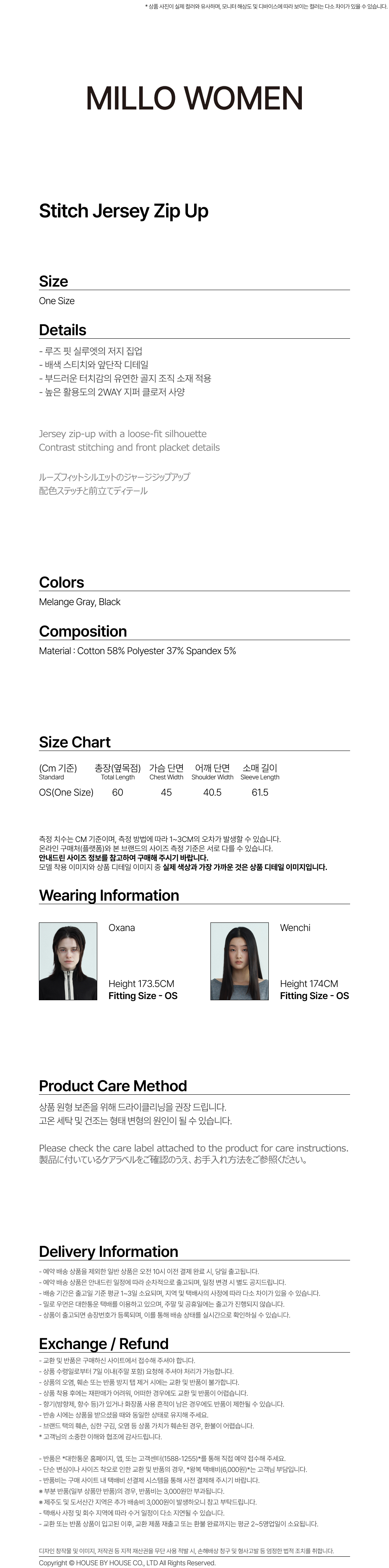 밀로 우먼 스티치 저지 집업 멜란지 그레이
