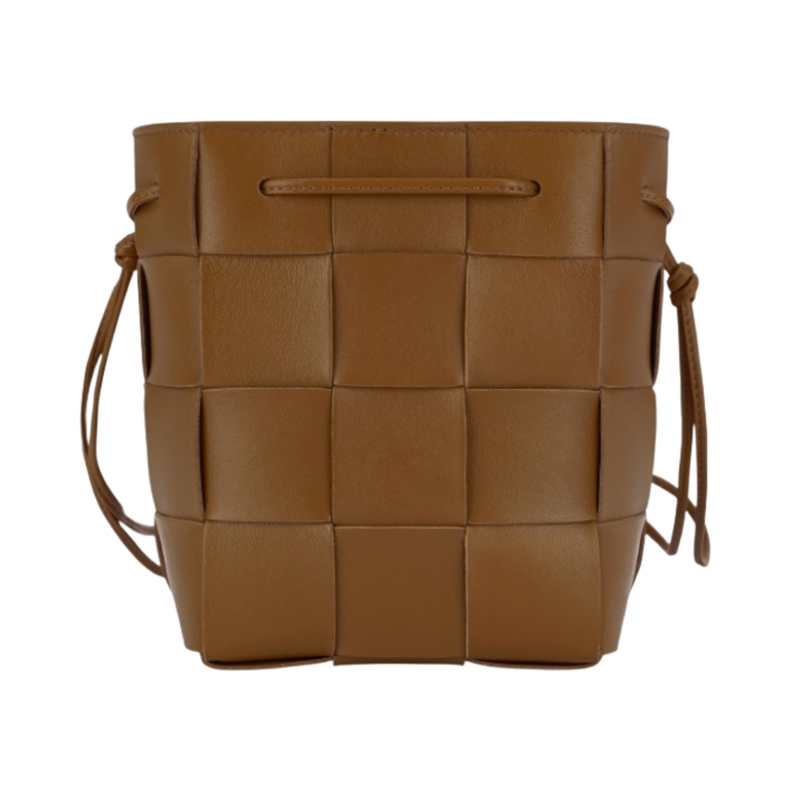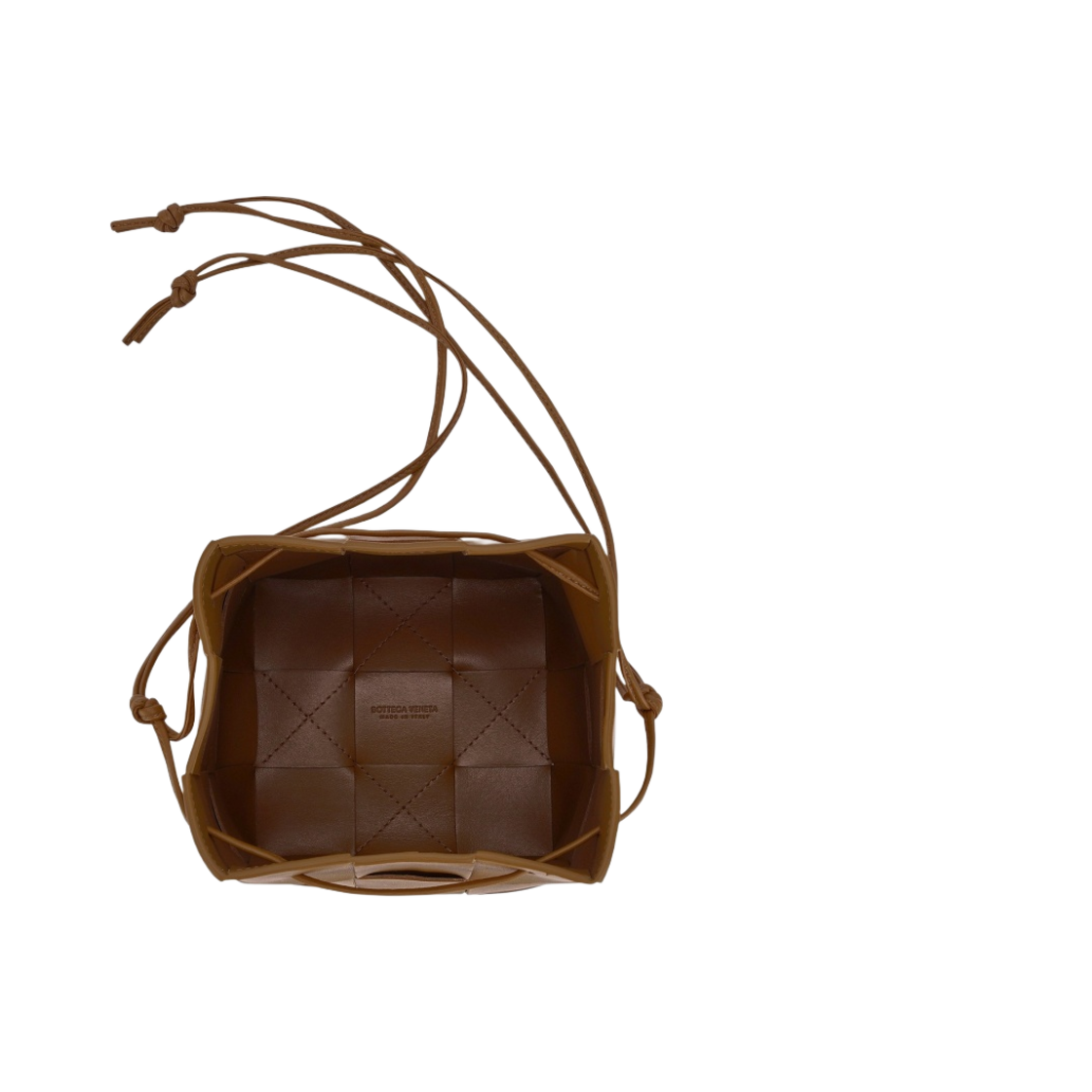 보테가 베네타 스몰 레더 카세트 버킷백 카멜