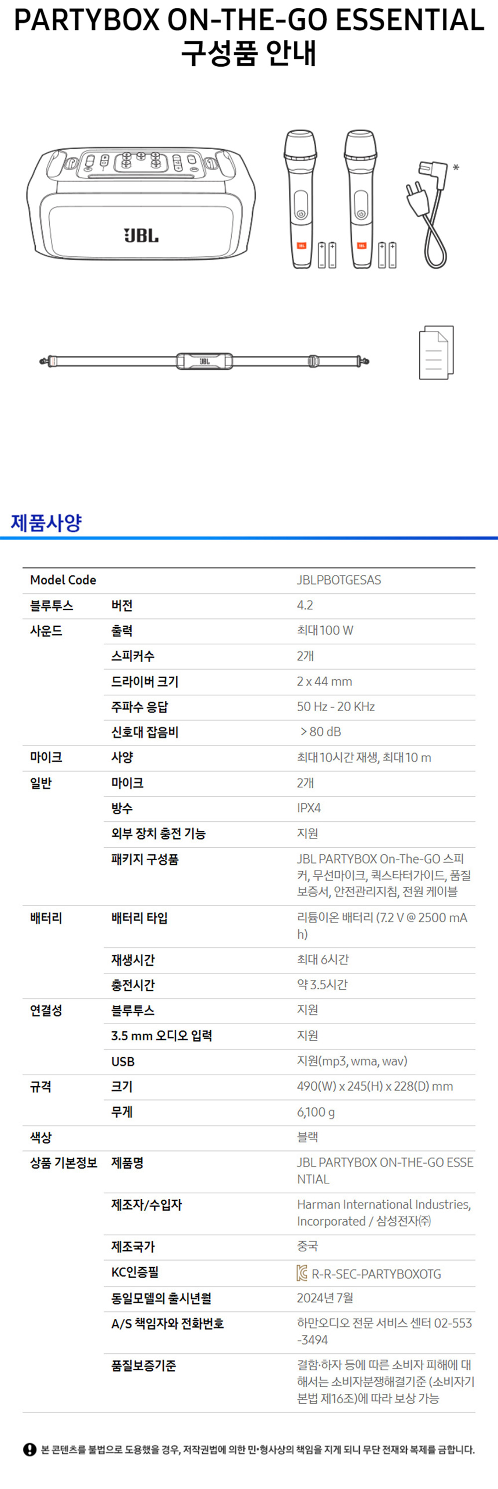 제이비엘 파티박스 온 더 고 에센셜 블루투스 스피커
