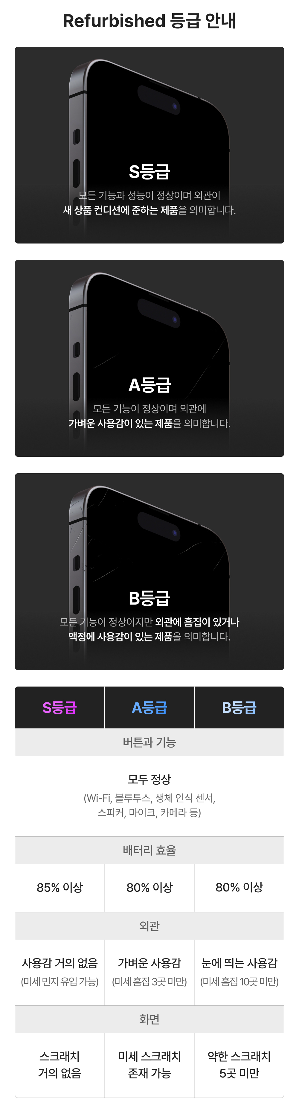 본 상품의 판매가 할인율은 제조사 신제품 출고가 대비 본 중고 상품 판매 가격을 기준으로 하는 점 참고 바랍니다.