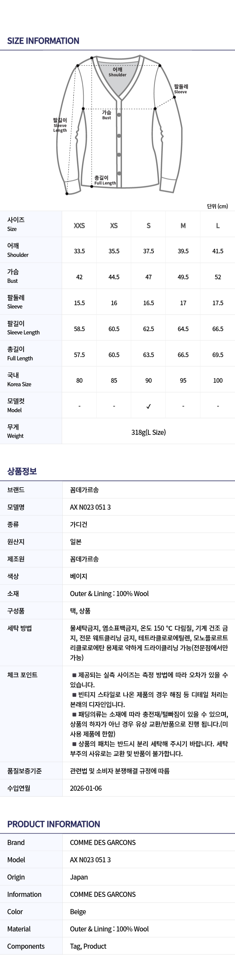 [15% 쿠폰] 플레이 꼼데가르송 블랙 하트 니트 가디건 베이지