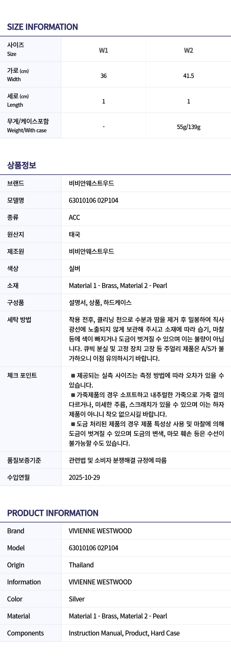 [15% 쿠폰] 비비안 웨스트우드 원 로우 펄 바스 릴리프 초커 실버