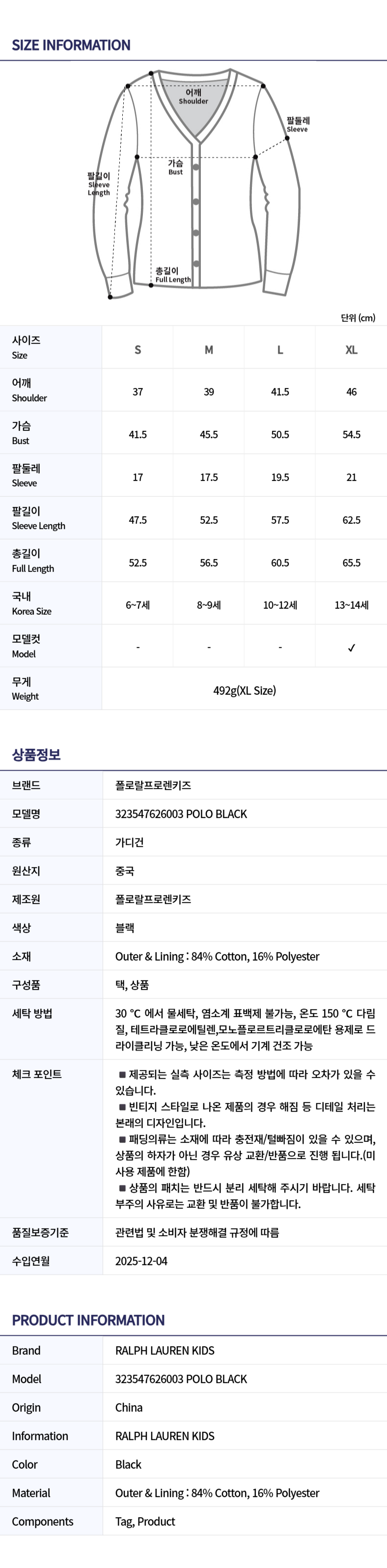 [15% 쿠폰] (키즈) 폴로랄프로렌 플리스 후드 집업 블랙 - 26SS