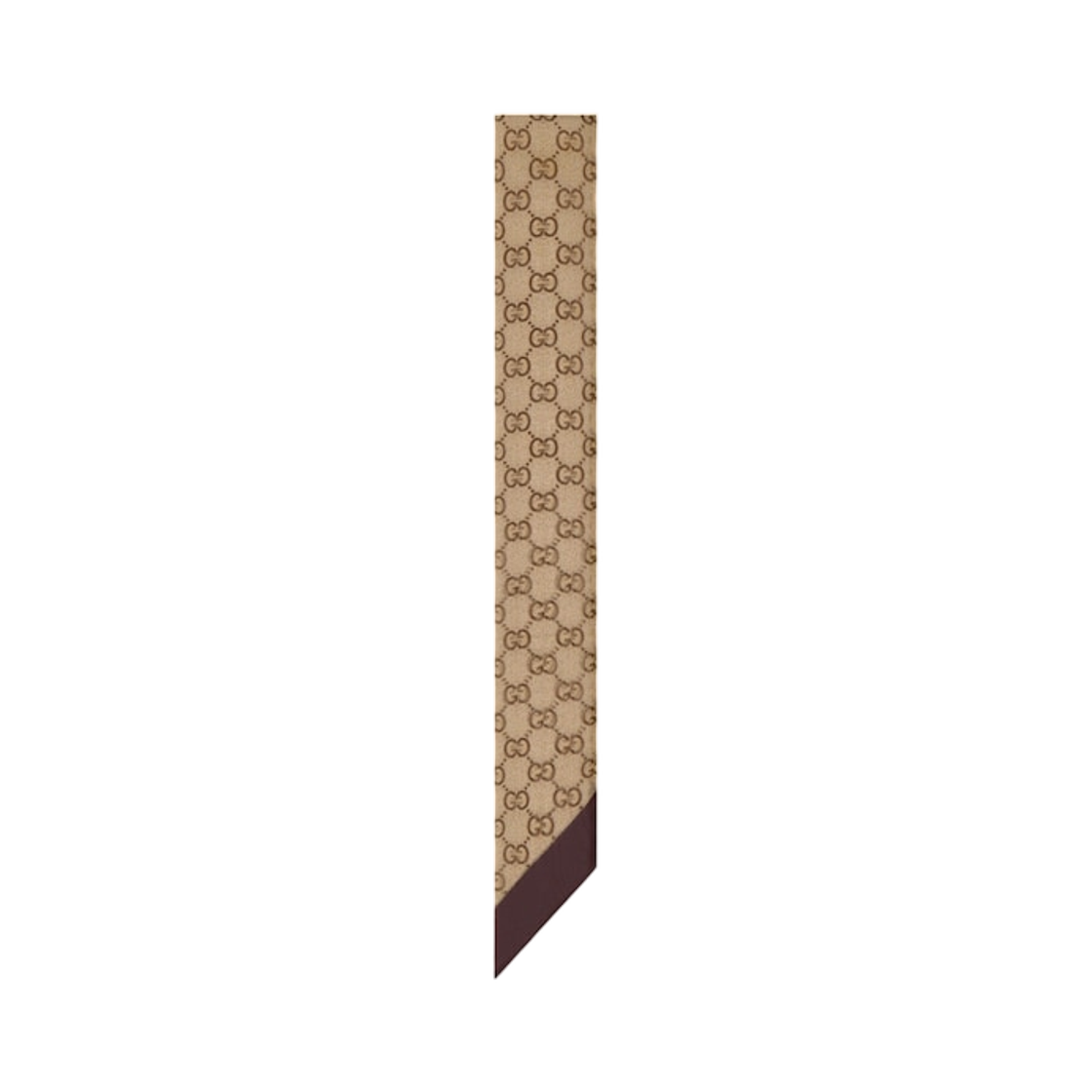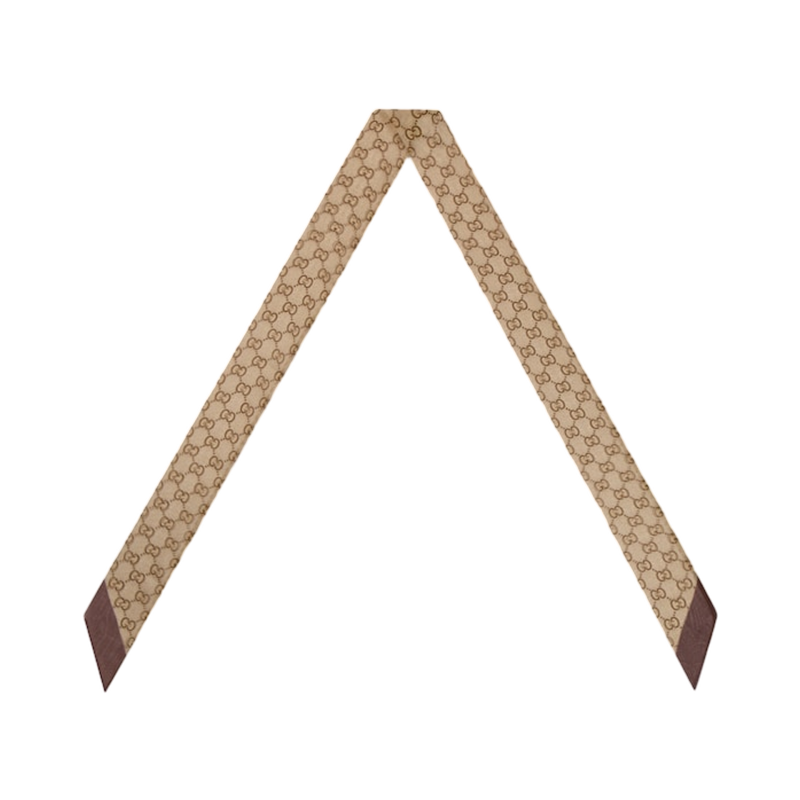 (W) Gucci Printed Silk Chiffon Ribbon Brown Light Brown