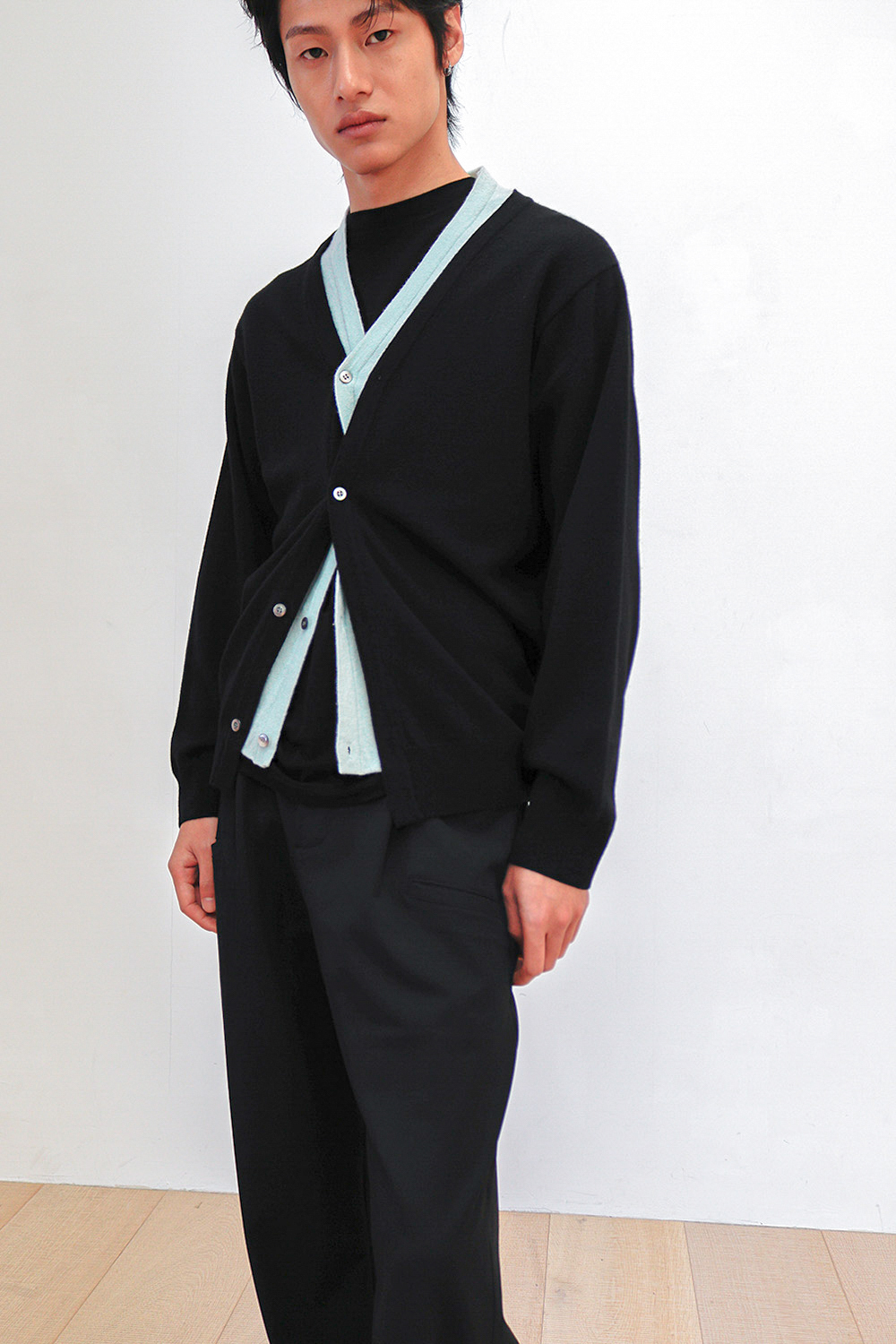 FABRIC Wool 60% / Nylon 35% / Cashmere 5% DETAILS Layered detail design Mother-of-pearl buttons Versatile styling options Passed washing durability test