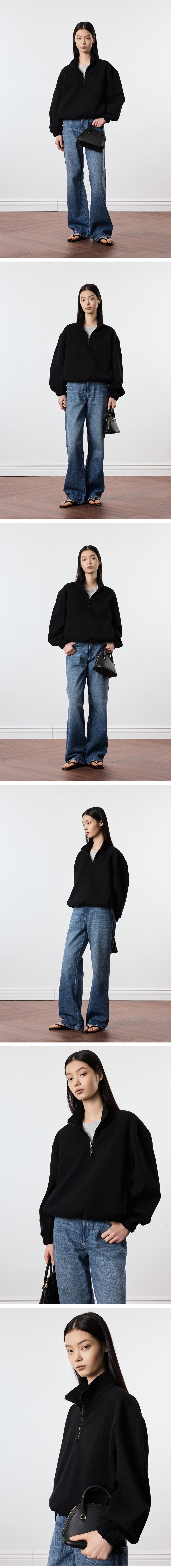 티엔지티 우먼 오버사이즈 플리스 쿼터 집업 스웻셔츠 블랙