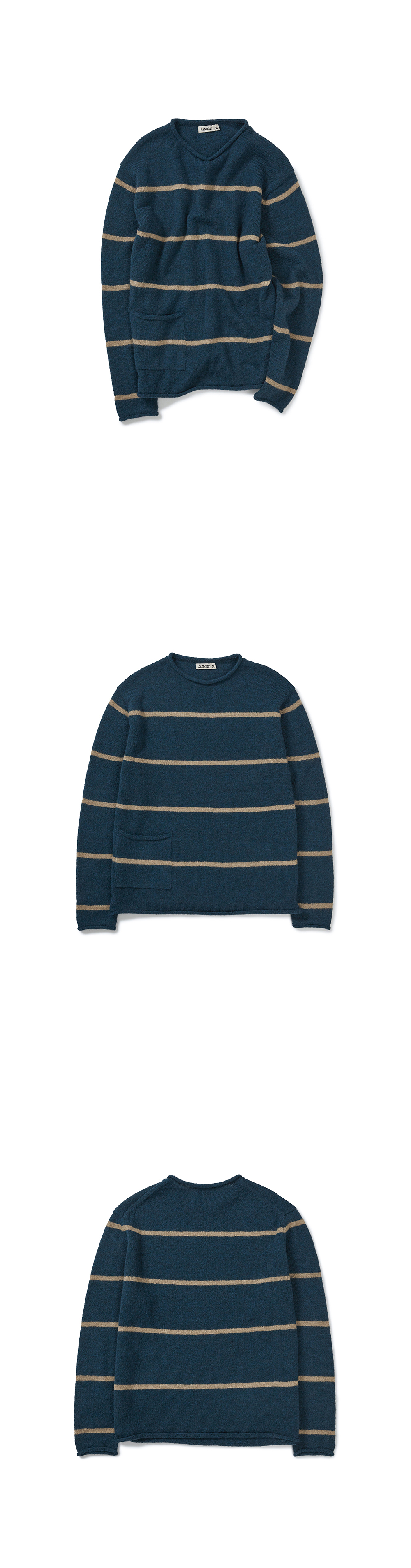 카락터 롤업 스트라이프 포켓 니트 딥 틸