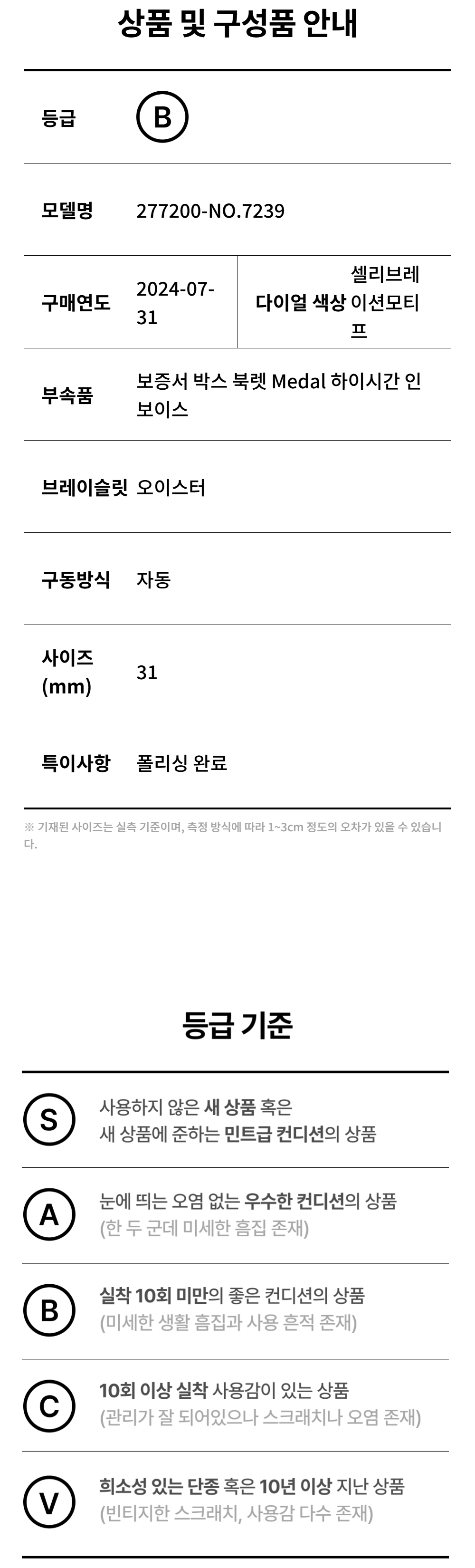 롤렉스 오이스터 퍼페츄얼 31-277200 셀리브레이션모티프 바 오이스터 NO.7239