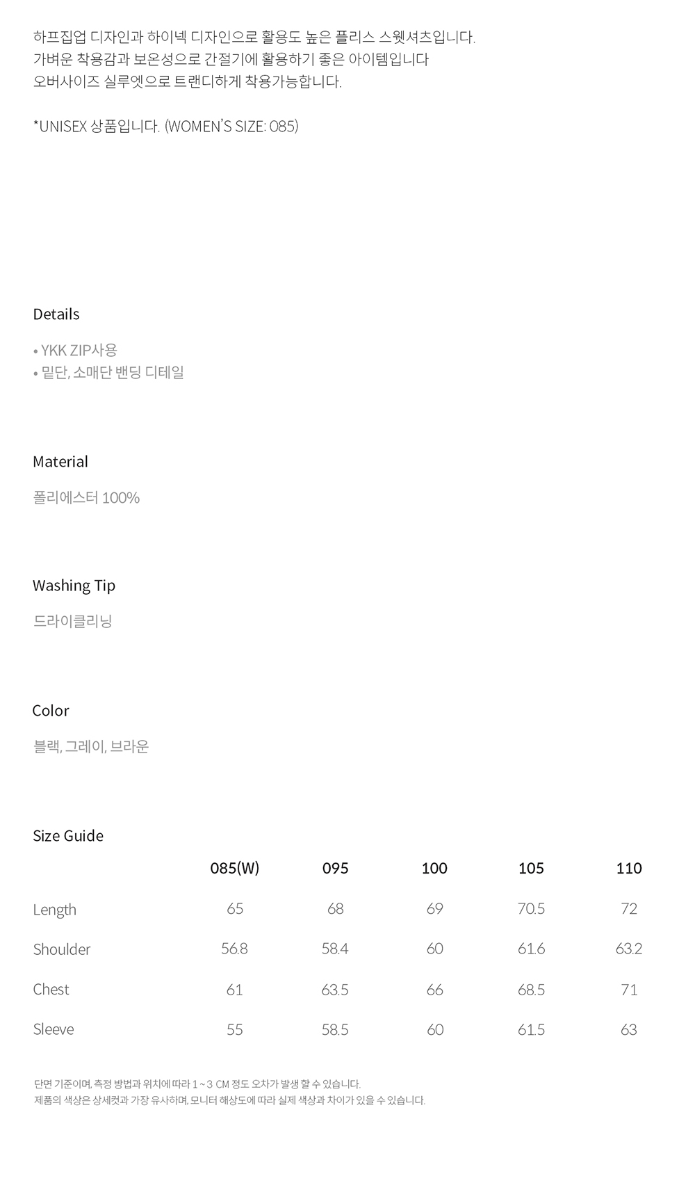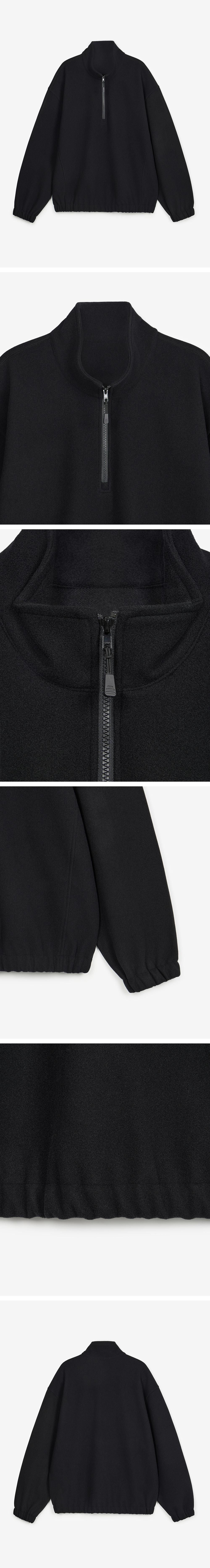 티엔지티 오버사이즈 플리스 쿼터 집업 스웻셔츠 블랙