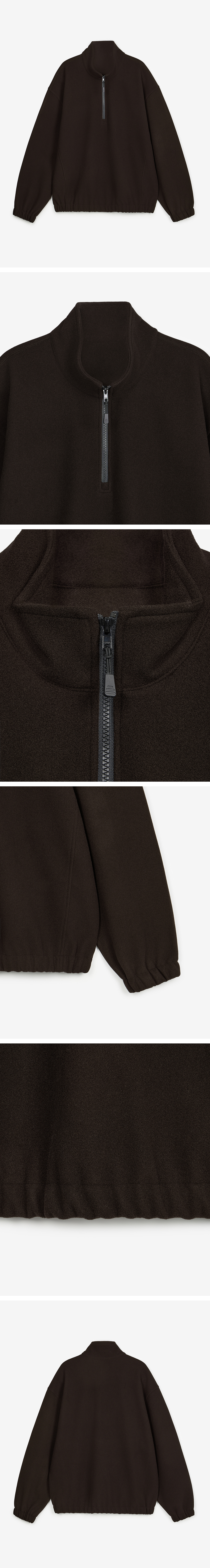 티엔지티 우먼 오버사이즈 플리스 쿼터 집업 스웻셔츠 브라운