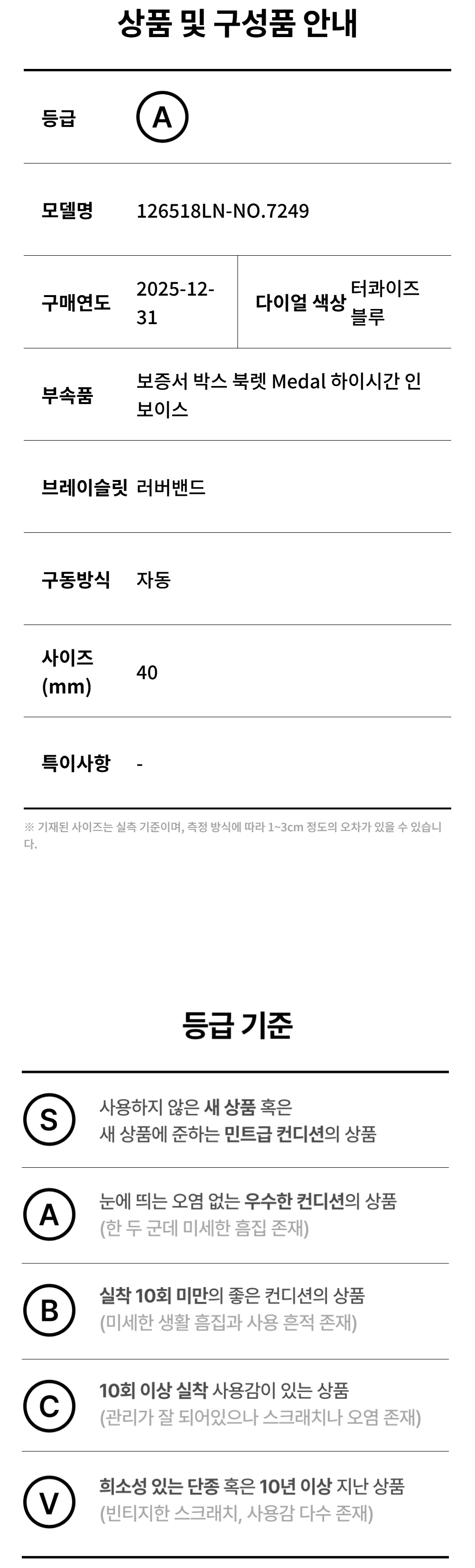 롤렉스 데이토나 40-126518LN 터콰이즈 블루 바 NO.7249
