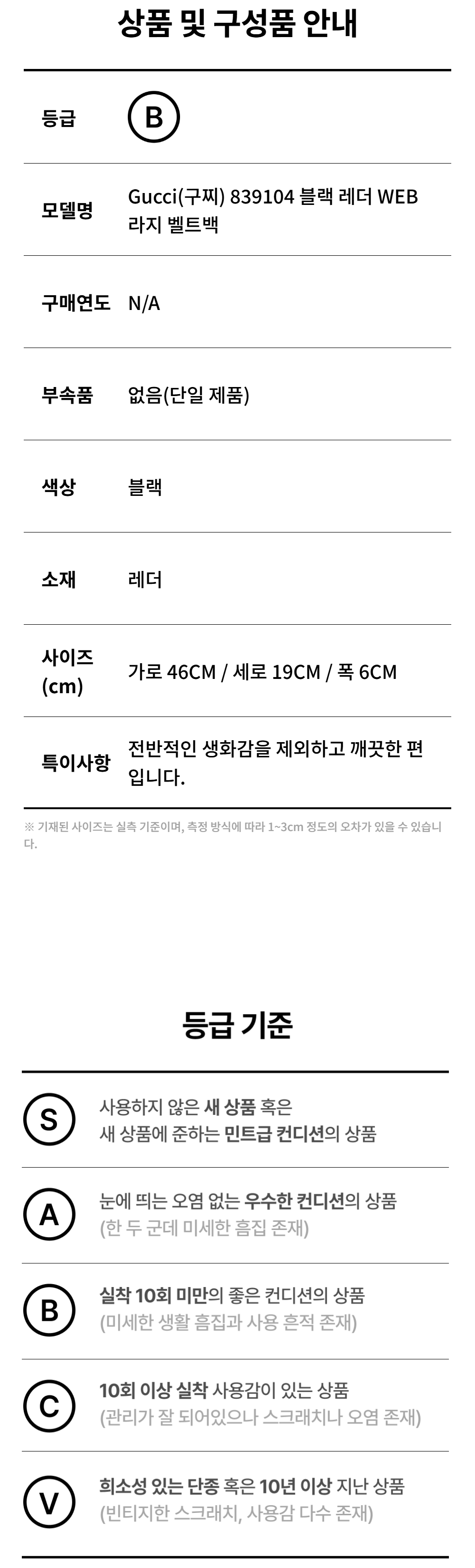 구찌 839104 블랙 레더 웹 라지 벨트백