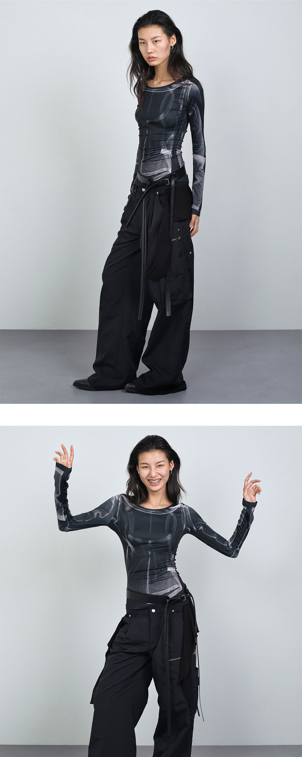 나체 믹스드 레이어드 타이 조거 팬츠 유니섹스 블랙 - 26SS