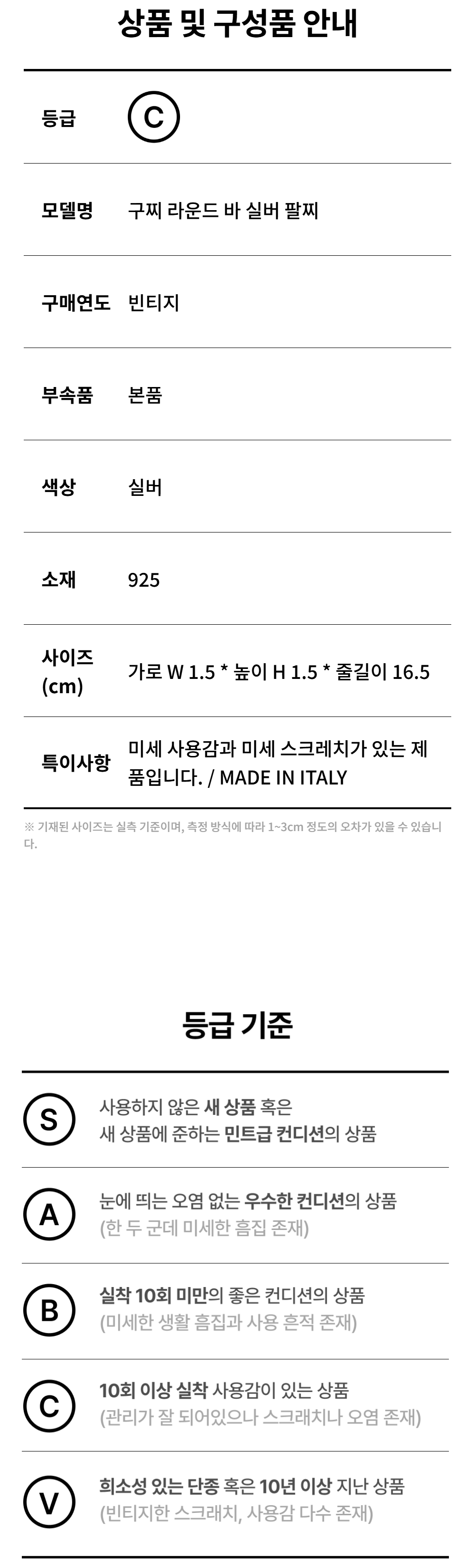 구찌 라운드 바 실버 팔찌 A-B48550