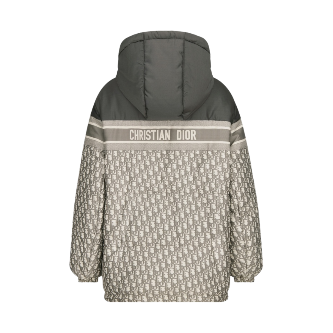 (W) 디올 리버시블 롱 다운 자켓 그레이 디올 오블리크 퀼티드 테크니컬 태피터