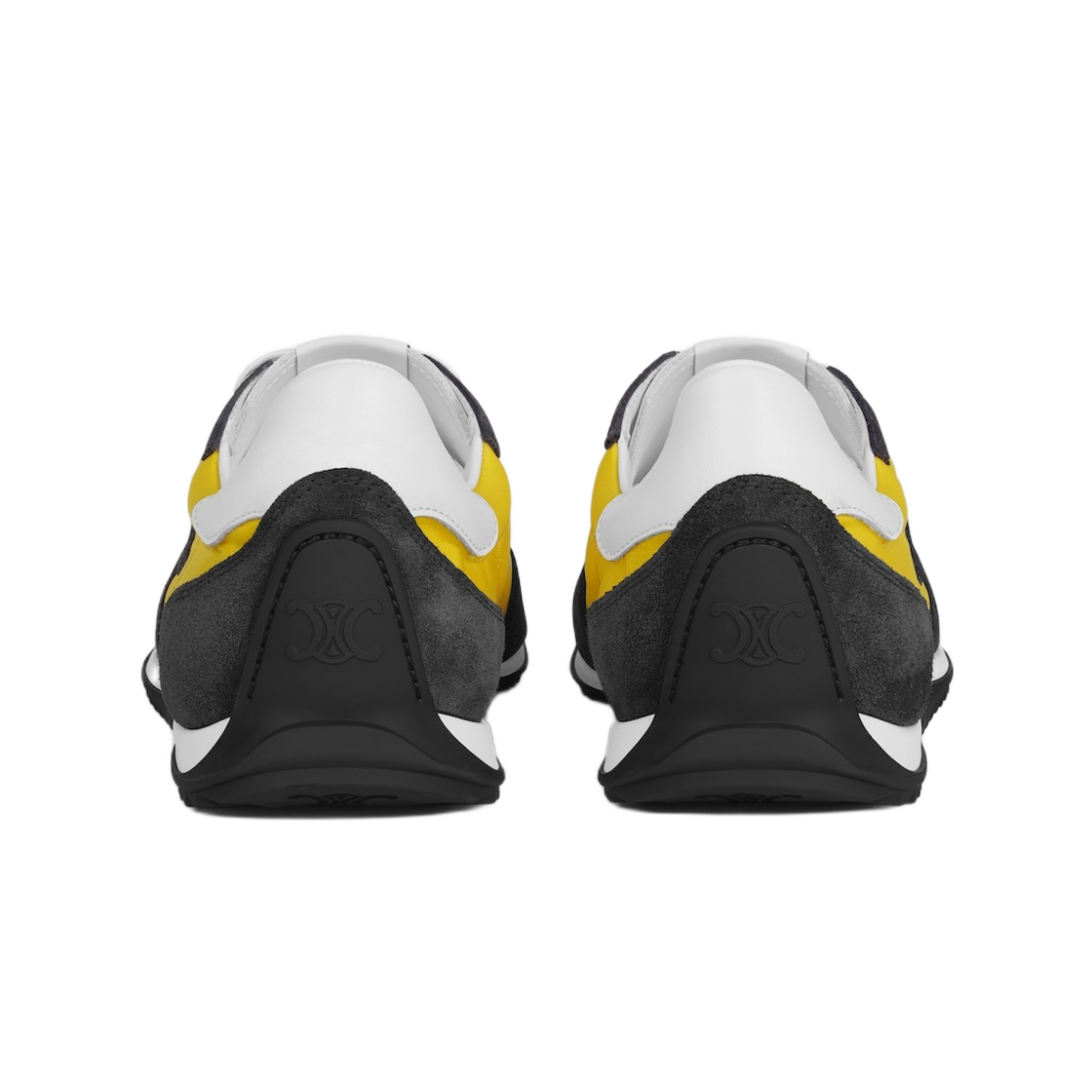 Celine Racer Low Lace-Up Sneakers with Triomphe in Nylon Suede Calfskin Yellow Dark Grey