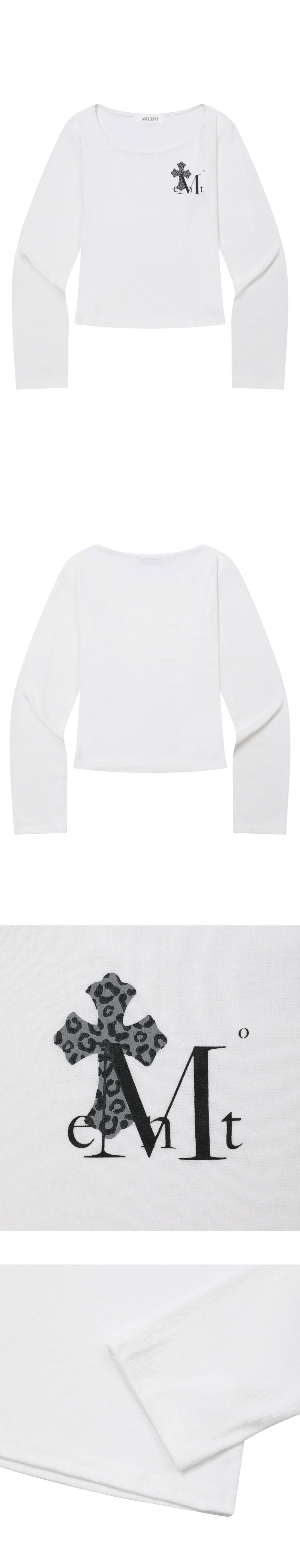 MUCENT Sahara Leopard Cross U-Neck Small Logo Long Sleeve T (2Color) White - Leopard Charcoal