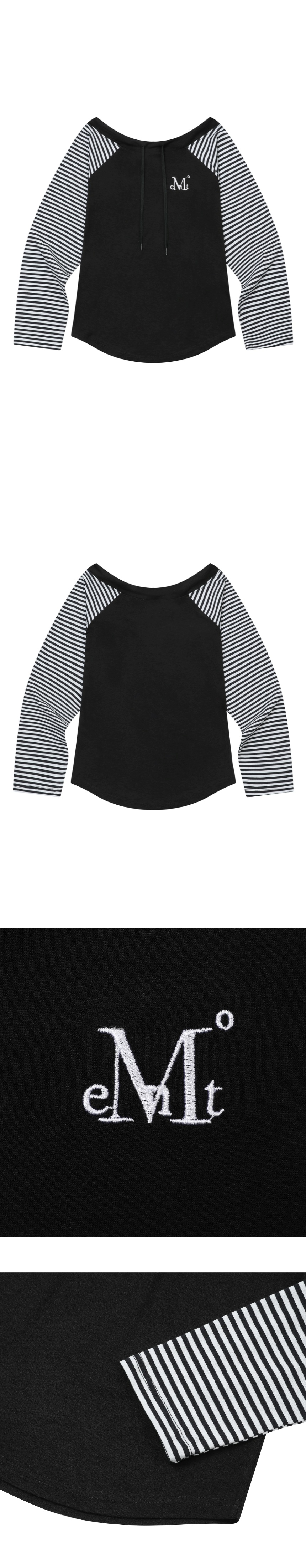 무센트 올리에 오프숄더 스트라이프 배색 나그랑 긴팔 티 (2컬러) 블랙