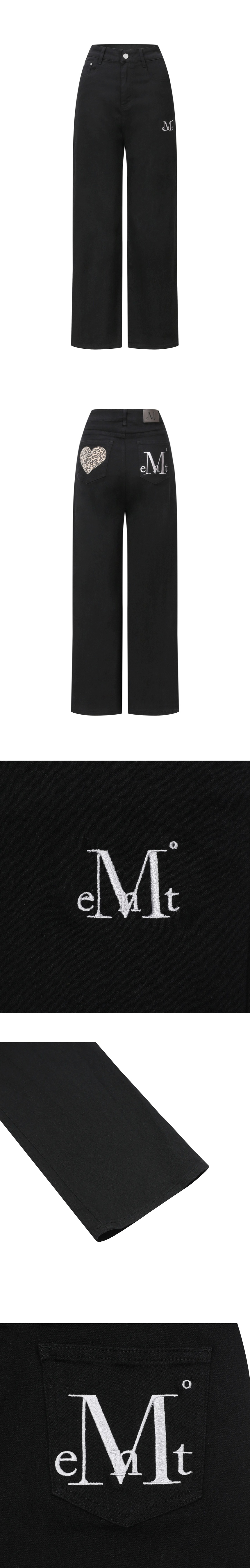 무센트 코론 백 레더 호피 하트 패치 와이드 코튼 팬츠 블랙