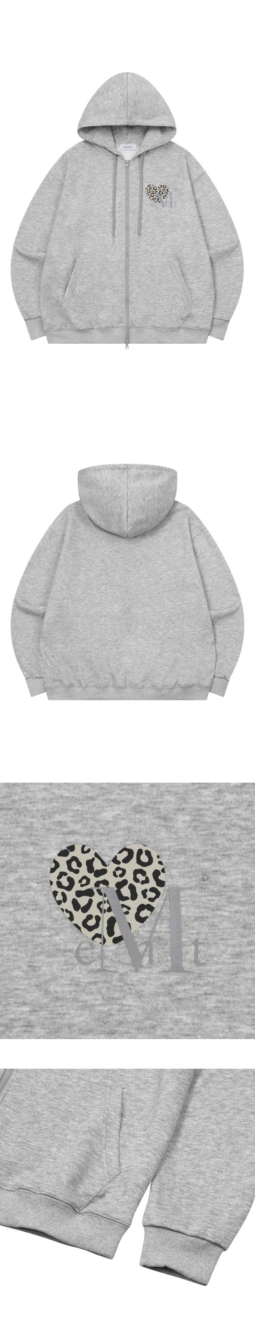 MUCENT Sierra Leopard Heart Hood Zip-Up Unisex (2Color) Gray-Leopard Brown
