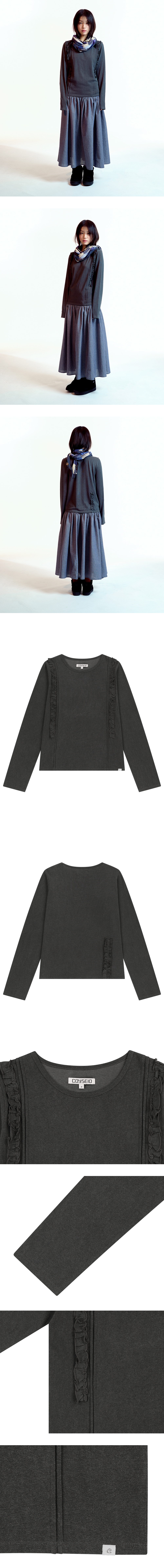 코이세이오 더블 러플 롱 슬리브 다크 그레이