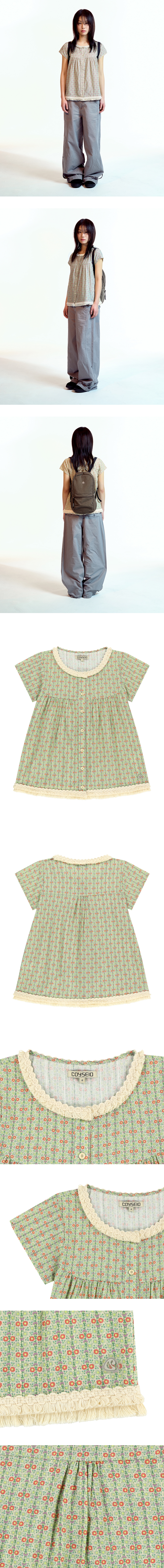 코이세이오 프린지 셔링 블라우스 라이트 그린