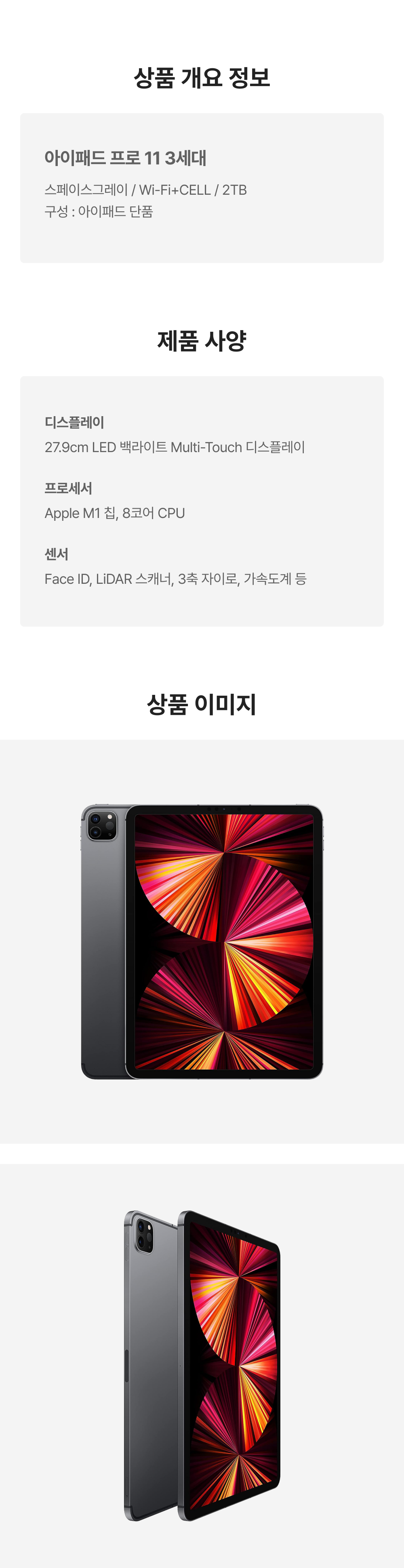 [S등급] 리퍼비시 아이패드 프로 11 3세대 wifi+cellular Apple M1 2테라 스페이스그레이