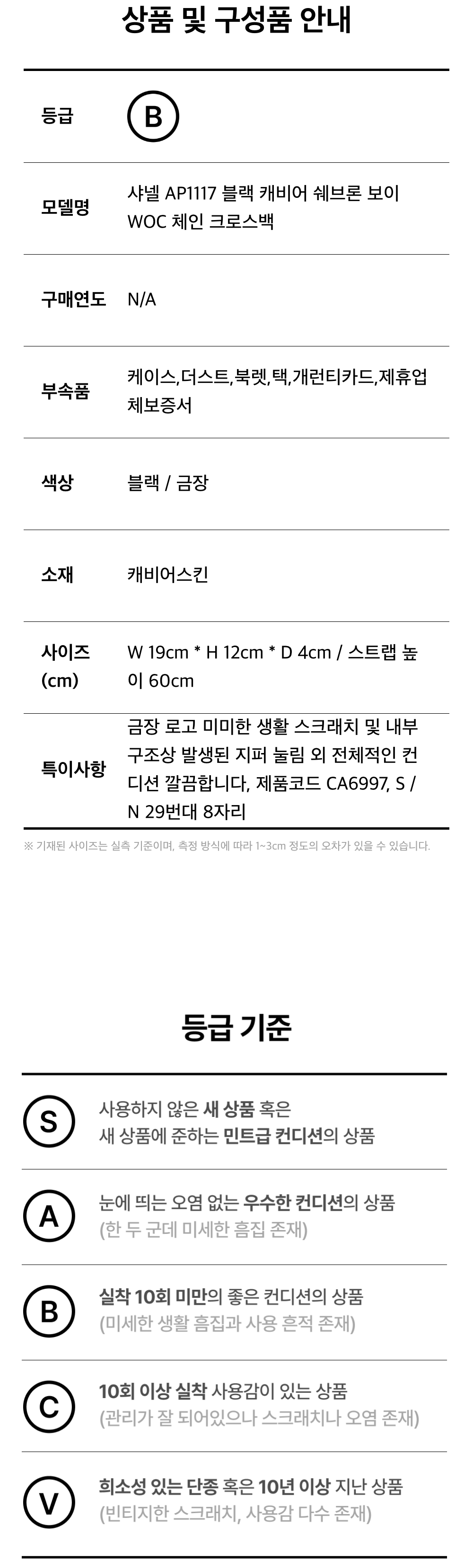 샤넬 AP1117 블랙 캐비어 쉐브론 보이 WOC 체인 크로스백