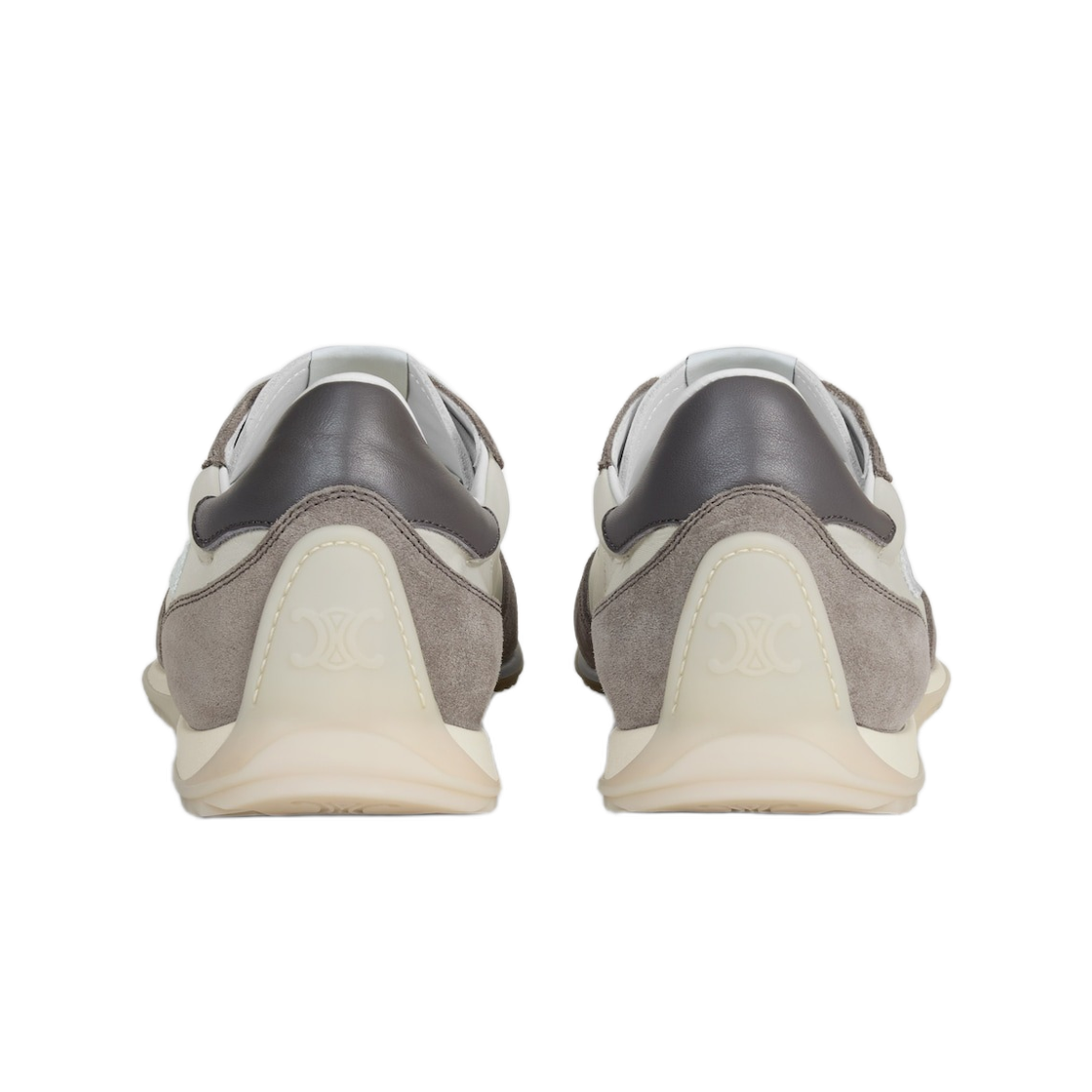Celine Racer Low Lace-Up Sneakers with Triomphe in Nylon Suede Calfskin Grey