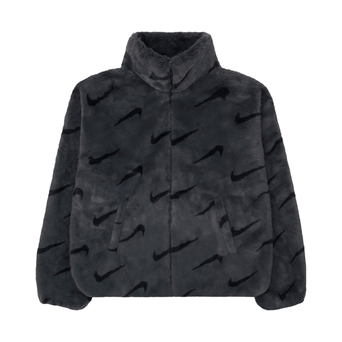 (W)Nike NSW Plush Printed Faux Fur Jacket Dark Smoke Grey - Asia