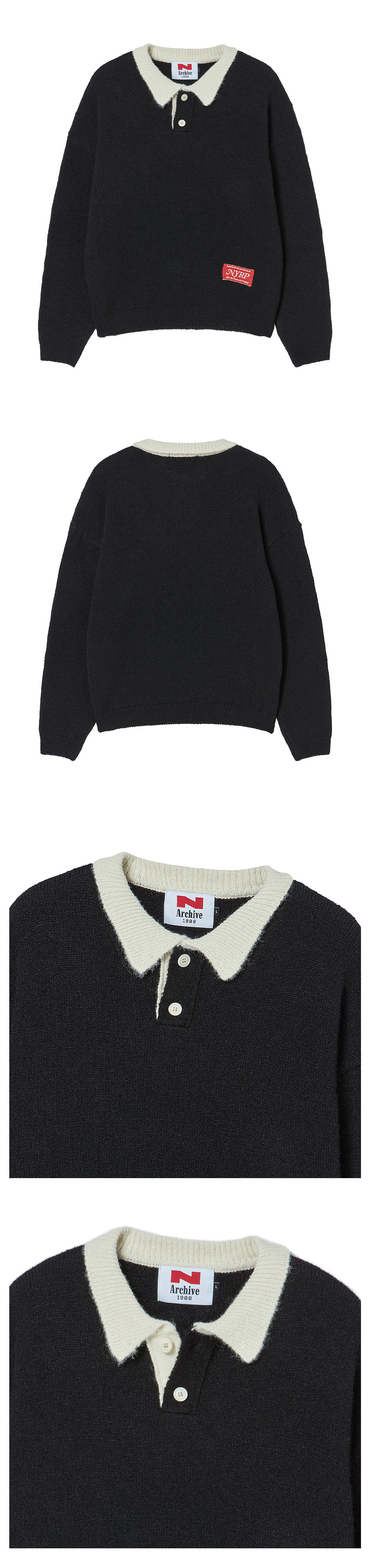 ㆍ한정 수량으로 제작된 컬렉션 라인의 니트 ㆍ헤어리한 텍스처의 니트 원사 사용으로 포근하고 빈티지한 무드 연출 ㆍ클래식 럭비 셔츠 디자인을 현대적으로 재해석한 니트 톱 ㆍ하단 라벨 디테일로 브랜드 아이덴티티 포인트 ㆍ단추에 번(Burn) 가공을 더해 자연스러운 에이징과 빈티지 감성 강조 ㆍ봄·가을 시즌에 적합한 가벼운 중량의 원사 사용 ㆍ울 혼방 소재로 형태 안정성과 은은한 보온성 제공 ㆍ부드러운 착용감과 우수한 내구성의 합성 섬유 블렌딩 ㆍ유니섹스 상품으로 제작