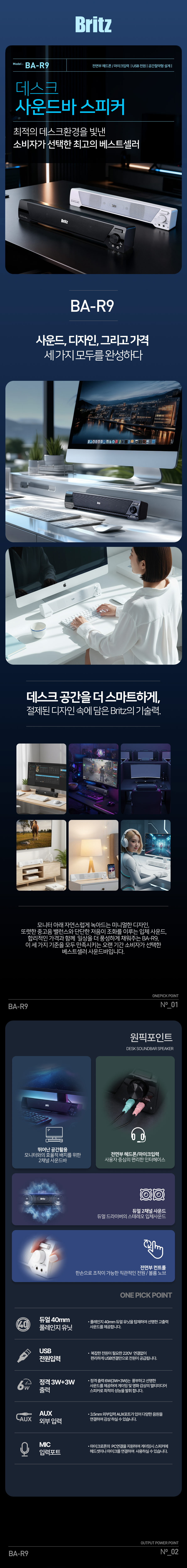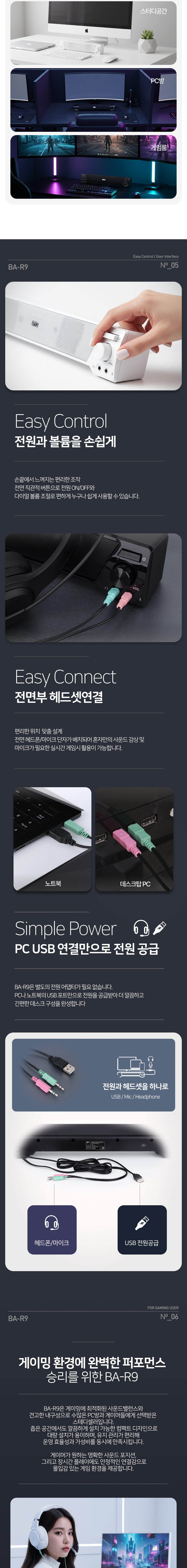 브리츠 BA-R9 컴퓨터 USB전원 데스크탑 2채널 사운드바 PC스피커 화이트