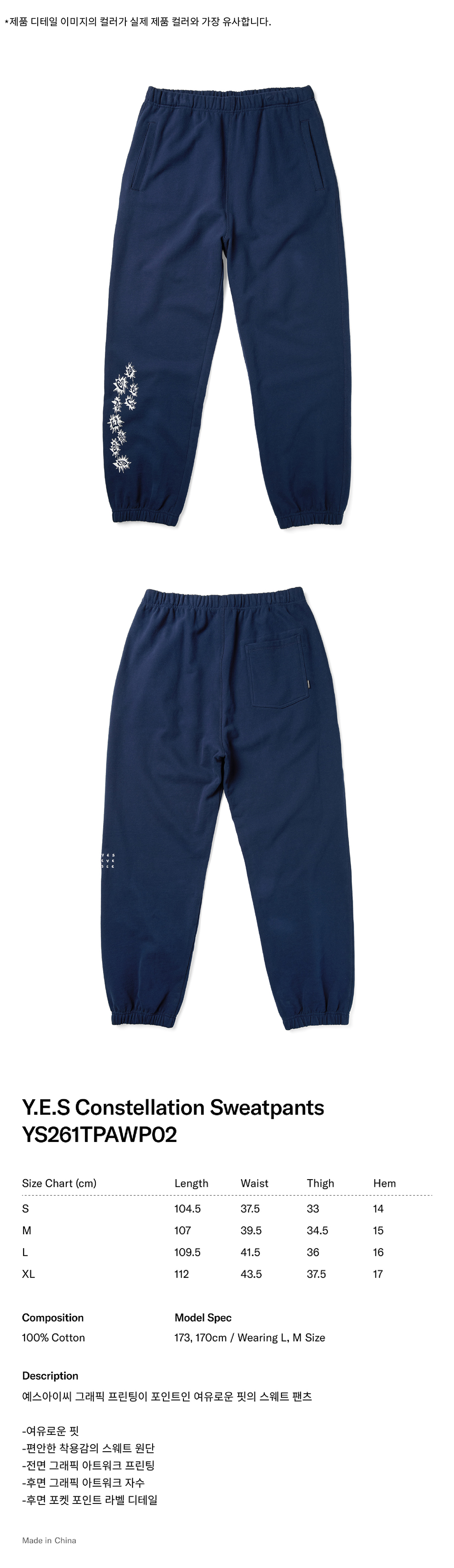 [더블적립] YESEYESEE Y.E.S Constellation Sweatpants Navy