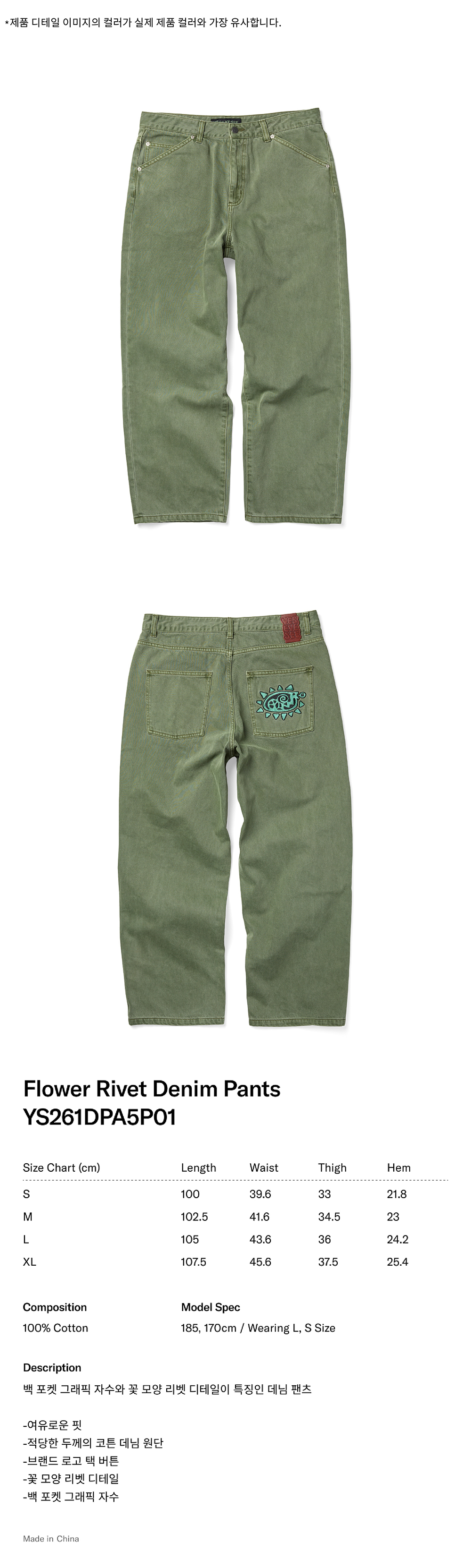 [더블적립] 예스아이씨 플라워 리벳 데님 팬츠 카키 그린