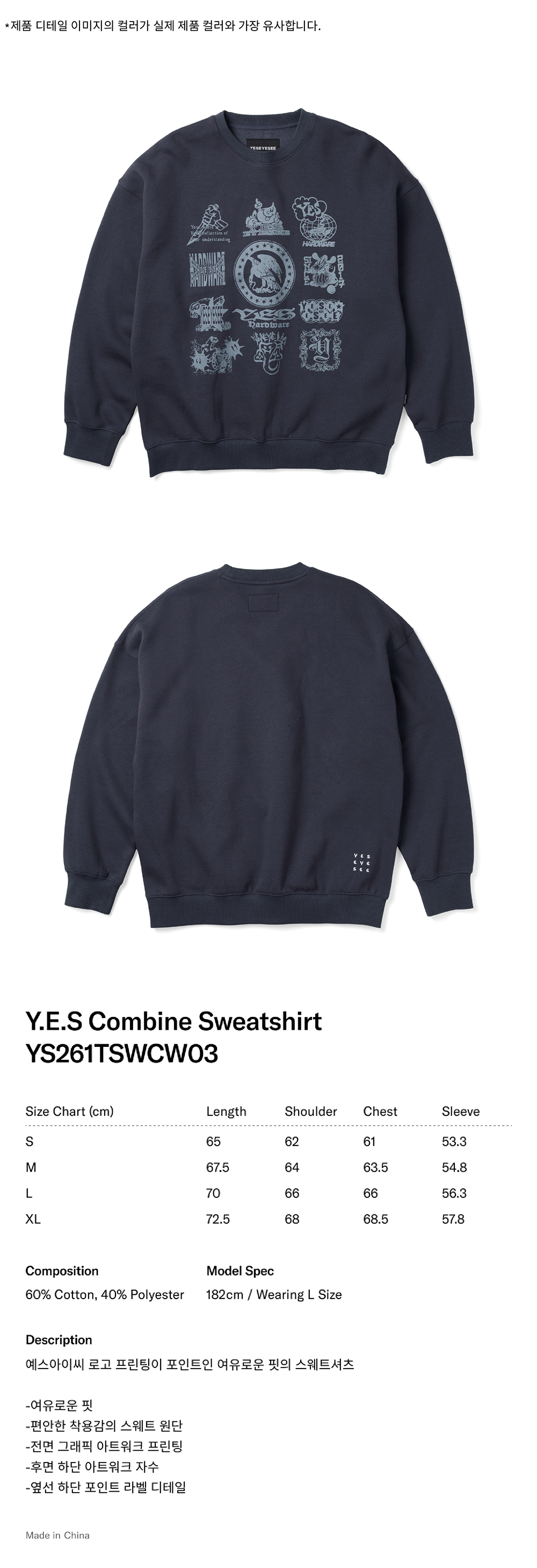 [더블적립] 예스아이씨 예스 컴바인 스웨트셔츠 라이트 네이비