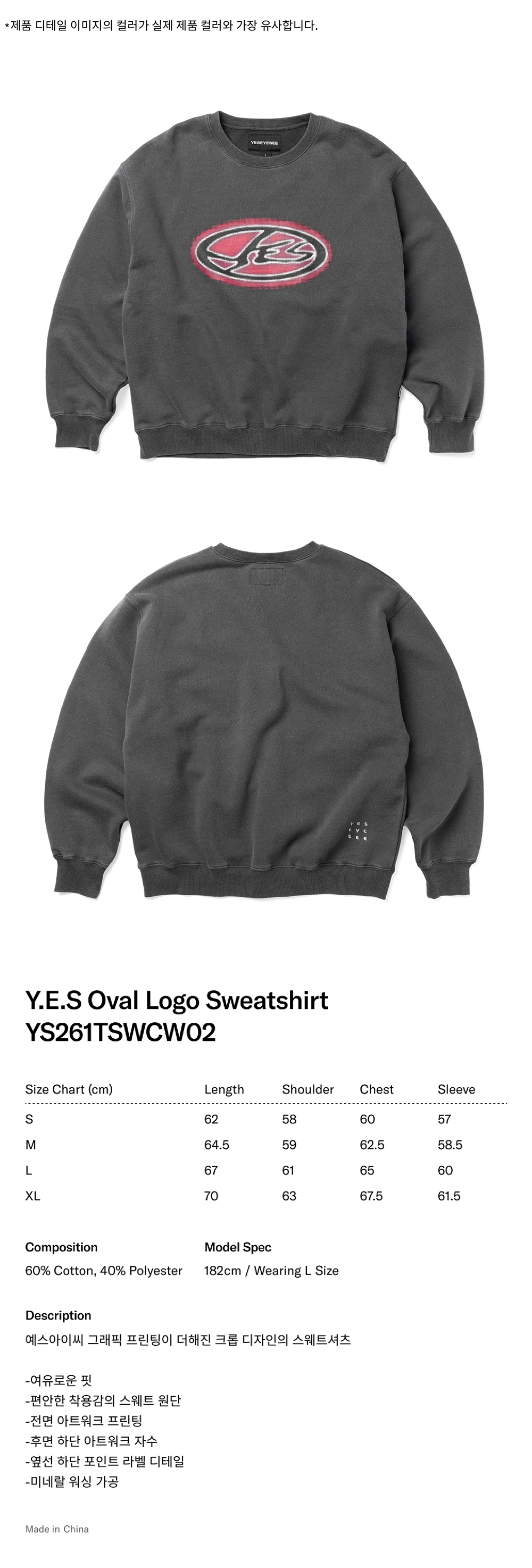 [더블적립] 예스아이씨 예스 오벌 로고 스웨트셔츠 차콜