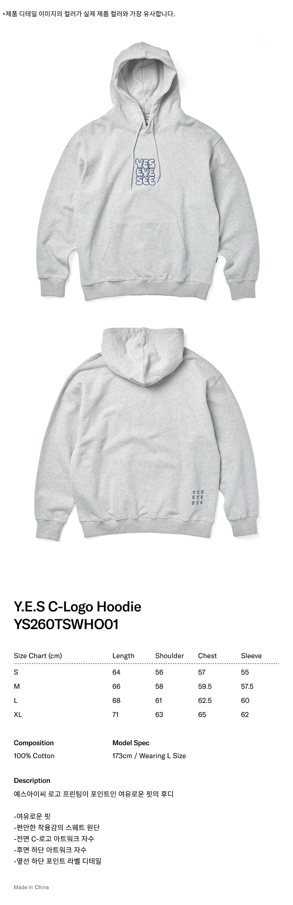 [더블적립] YESEYESEE Y.E.S C-Logo Hoodie Grey