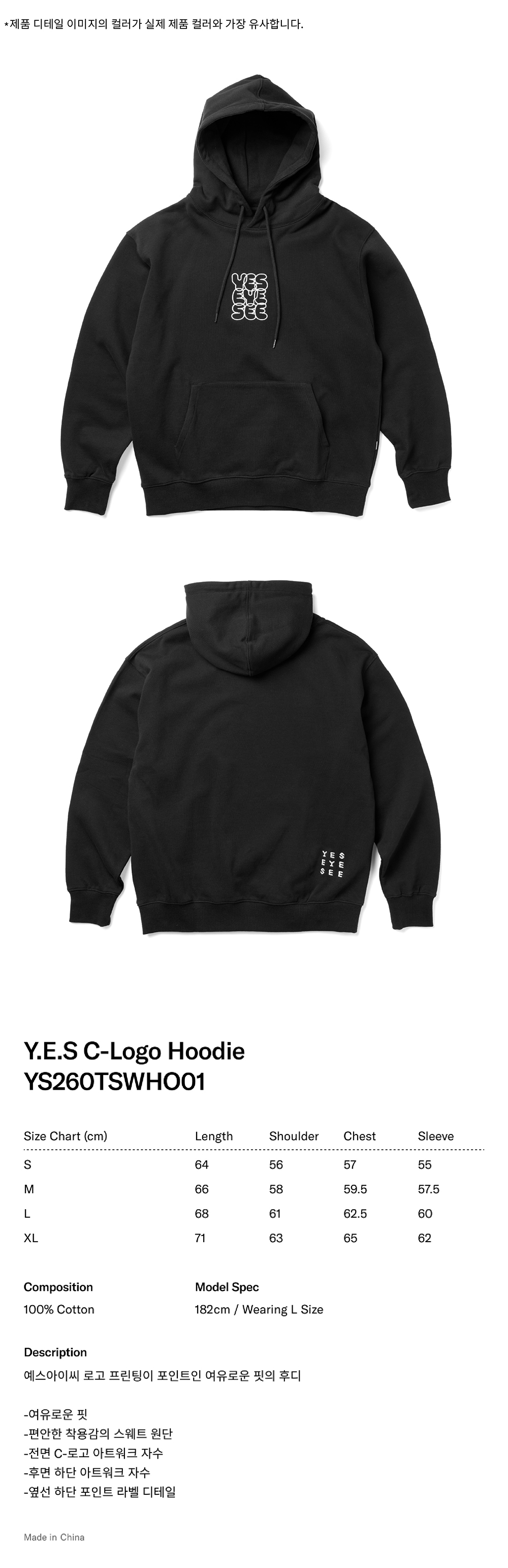 [더블적립] YESEYESEE Y.E.S C-Logo Hoodie Black