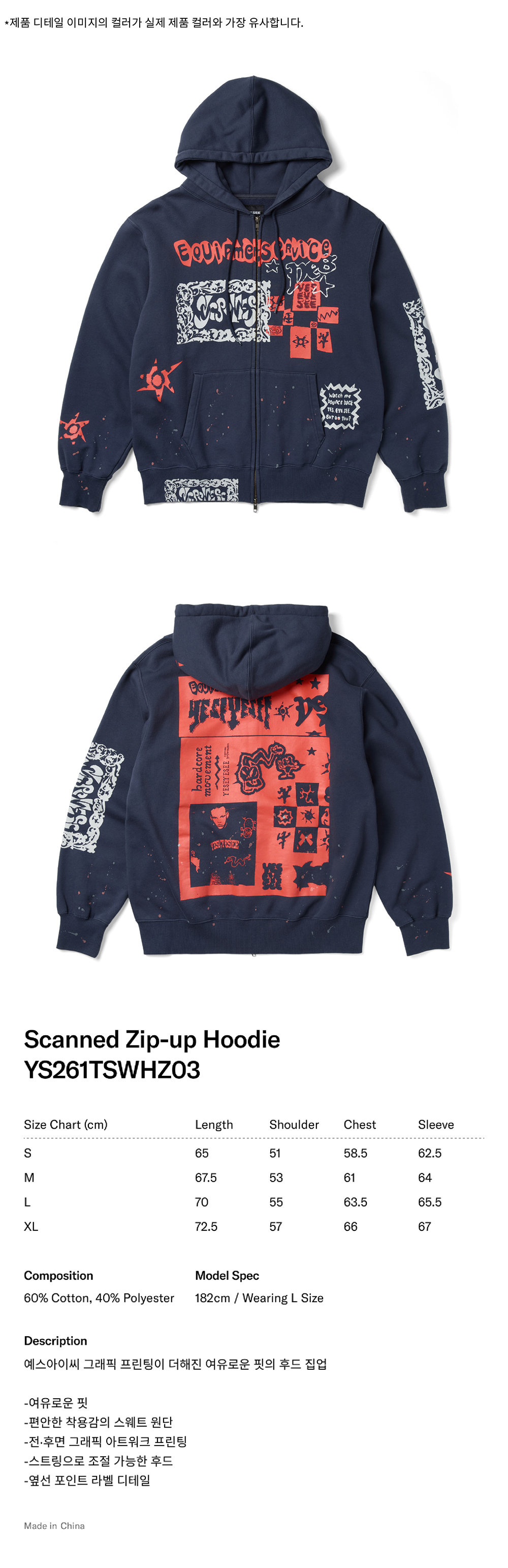 [더블적립] YESEYESEE Scanned Zip-up Hoodie Light Navy
