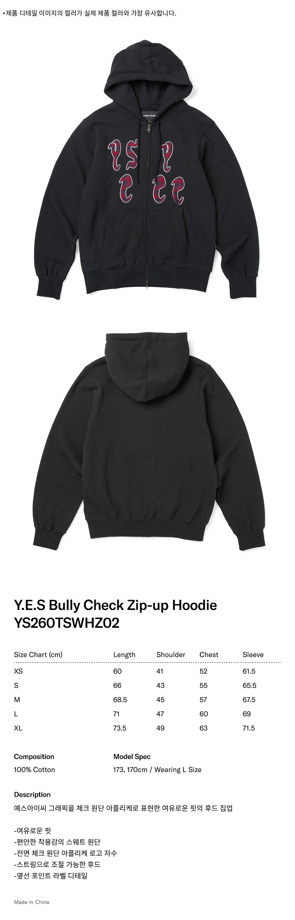 [더블적립] YESEYESEE Y.E.S Bully Check Zip-up Hoodie Black