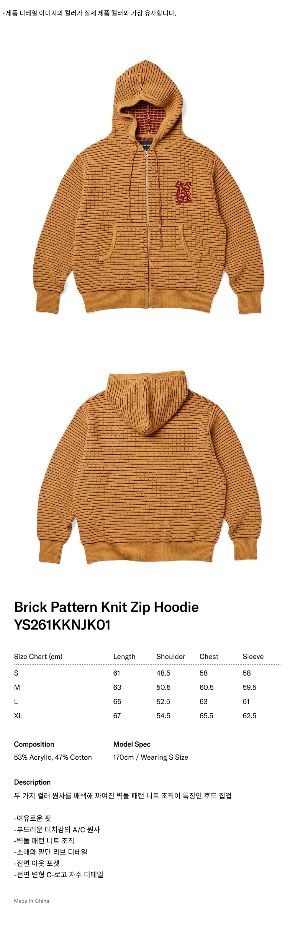 [더블적립] 예스아이씨 브릭 패턴 니트 집업 후디 옐로우
