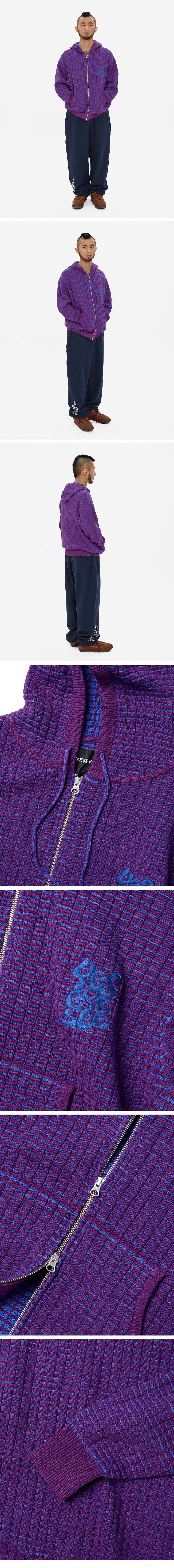 [더블적립] YESEYESEE Brick Pattern Knit Zip Hoodie Purple