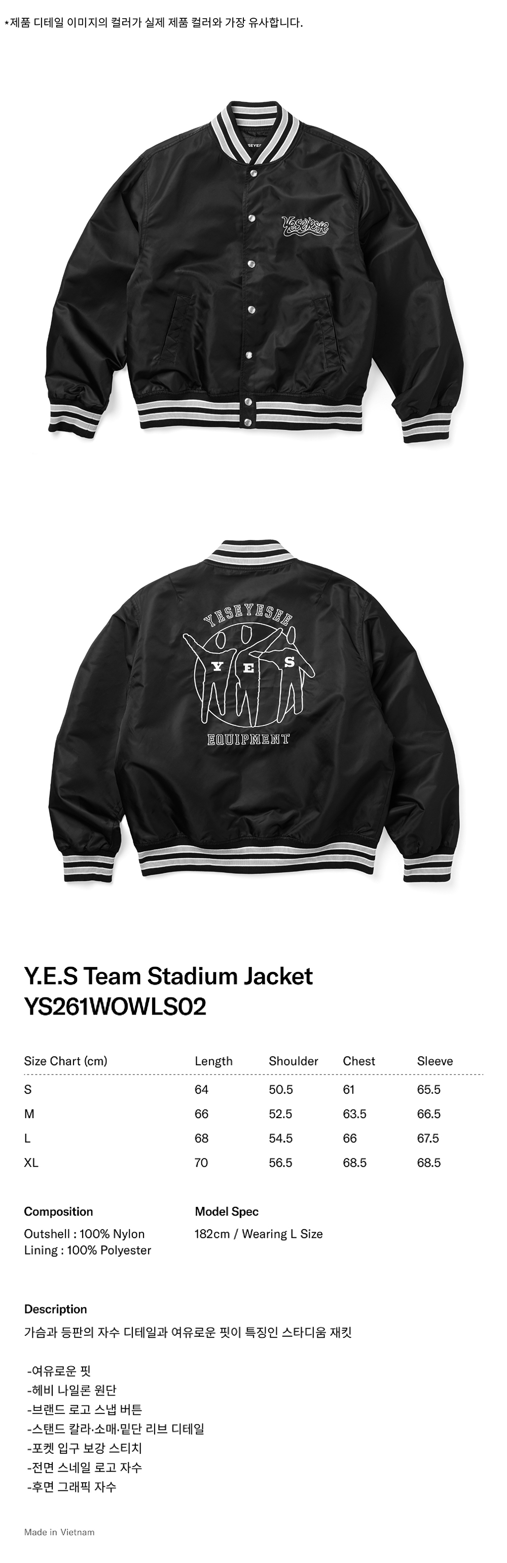[더블적립] YESEYESEE Y.E.S Team Stadium Jacket Black