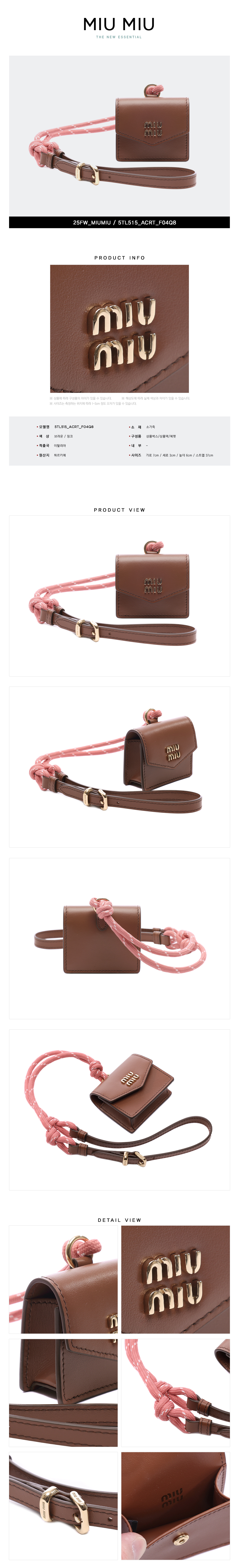 [15% 쿠폰] 미우 미우 레더 코드 앤 트릭 꼬냑 타마린드
