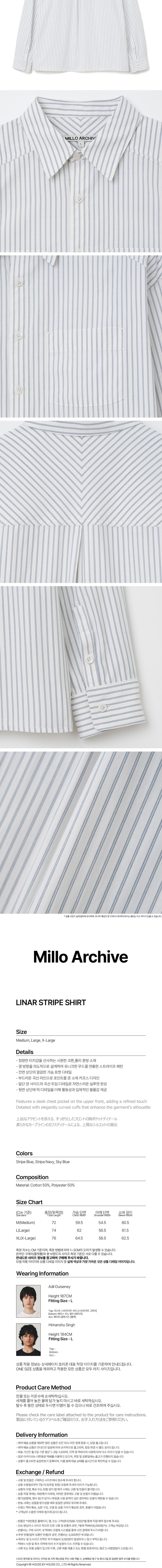 밀로 아카이브 리나르 스트라이프 셔츠 스트라이프 그레이
