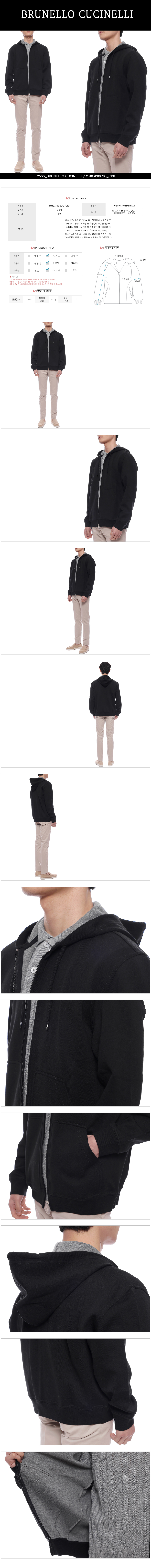 [15% 쿠폰] 브루넬로 쿠치넬리 코튼 캐시미어 실크 프렌치 테리 더블 클로스 지퍼 후드 스웨트셔츠 블랙