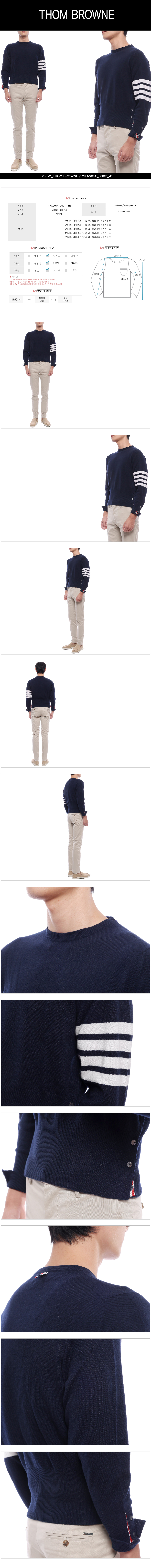 [15% 쿠폰] 톰브라운 사선 캐시미어 크루넥 니트 네이비