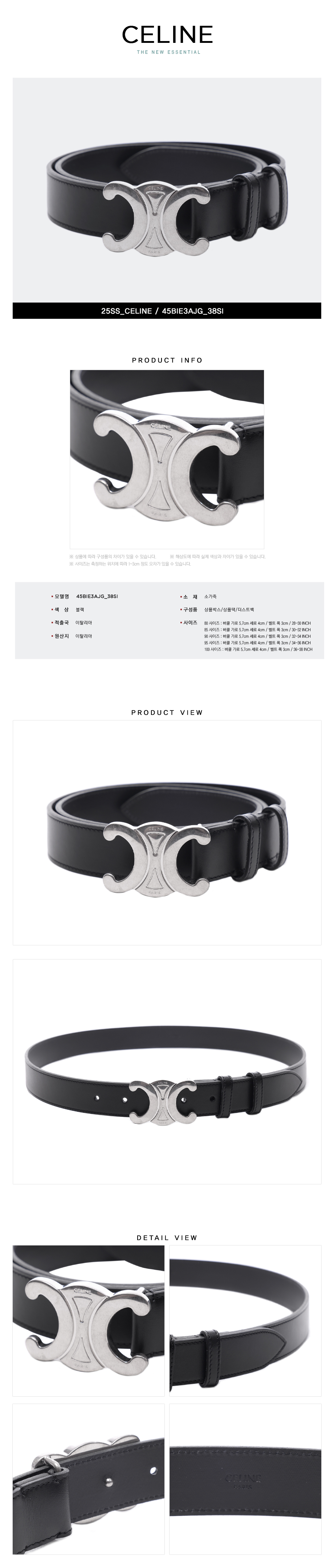 [15% 쿠폰] 셀린느 라지 트리옹프 벨트 빈티지 카프스킨 블랙
