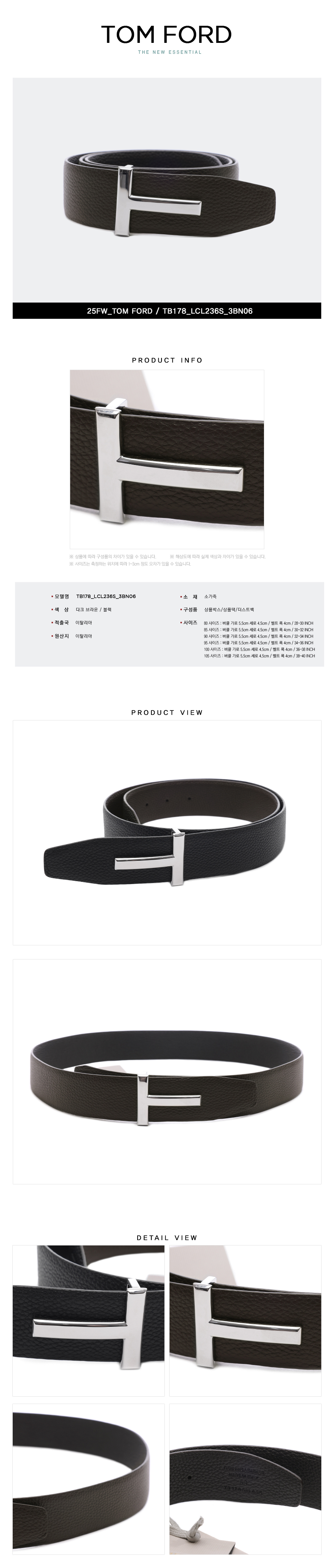 [15% 쿠폰] 톰포드 그레인 레더 T 아이콘 벨트 브라운 블랙