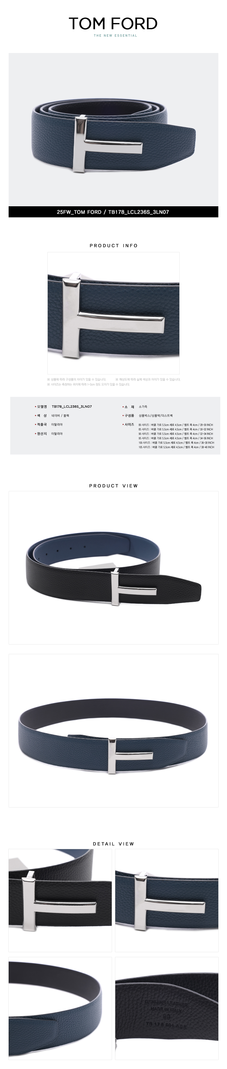 [15% 쿠폰] 톰포드 그레인 레더 T 아이콘 벨트 네이비